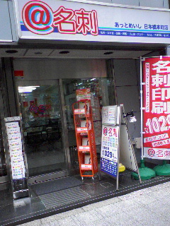 新日本橋駅、小伝馬町駅からすぐ。名刺作成、印刷のお店「アット名刺」です。「その日のうちに名刺が欲しい!」とか「はんこ、印鑑、シャチハタ型スタンプを作りたい!」というニーズにお応えします。